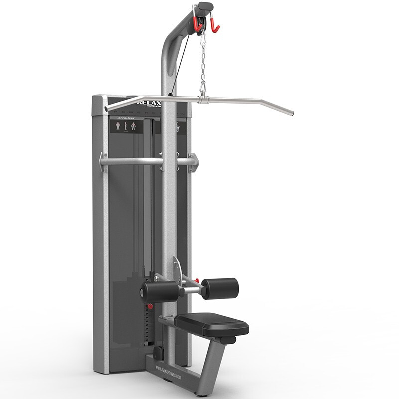 坐姿下拉是练习背部必不可少的有效动作,效果与引体向上作用类似。对于初学者来说,由于力量不够而无法完成引体向上,坐姿下拉无疑是最好的替代选择,可以自己控制负荷重量。目标锻炼部位:背阔肌、以及大圆肌等背部其他小肌群。